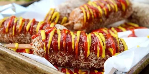 The Korean corndog, also known as "Korean hot dog" or "gamja hot dog," is a popular street food snack in South Korea. It is a unique twist on the traditional corndog that is commonly found in other parts of the world.